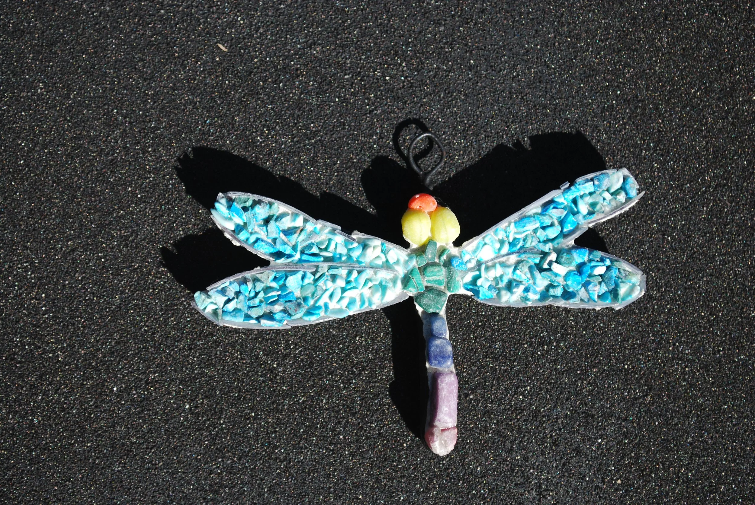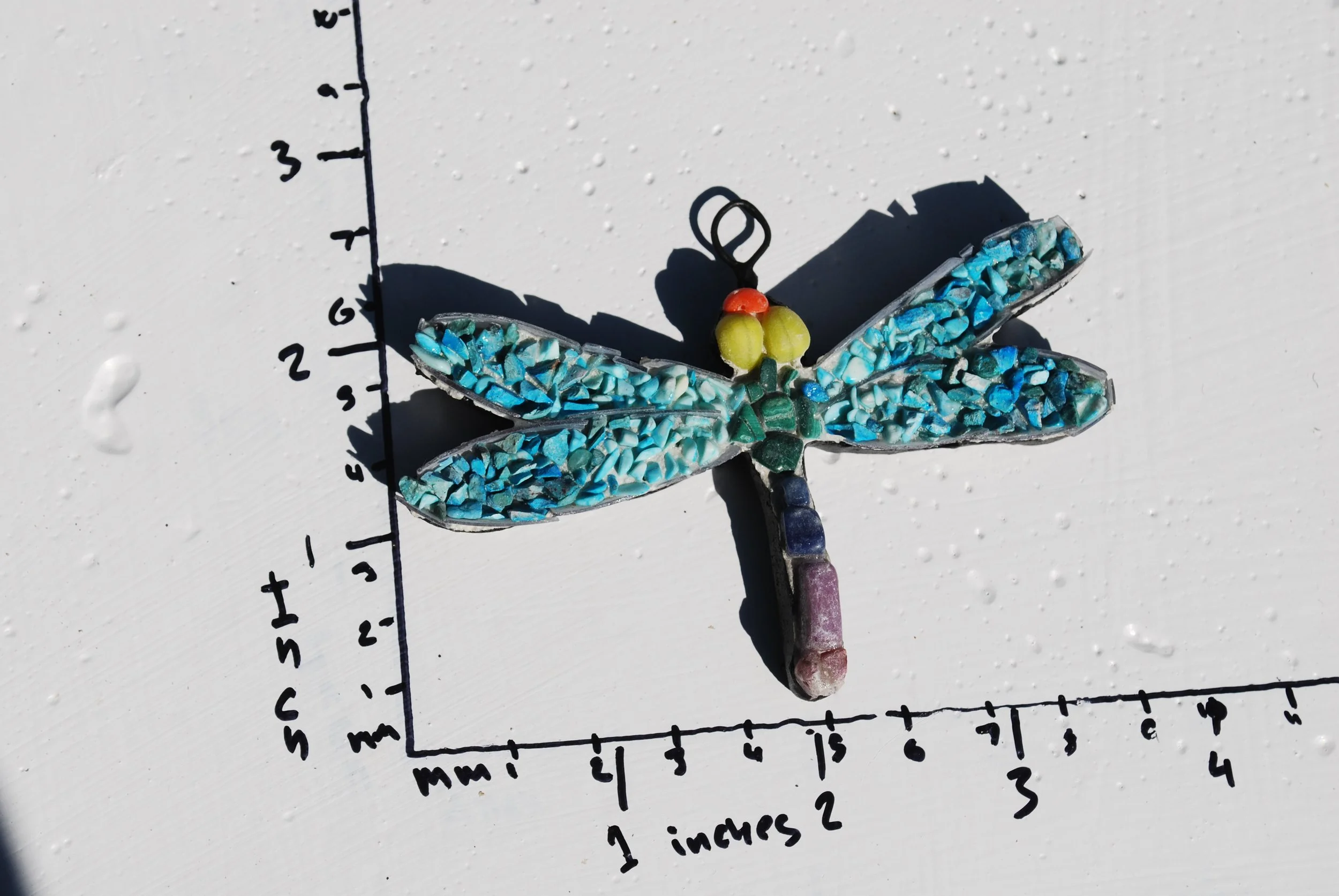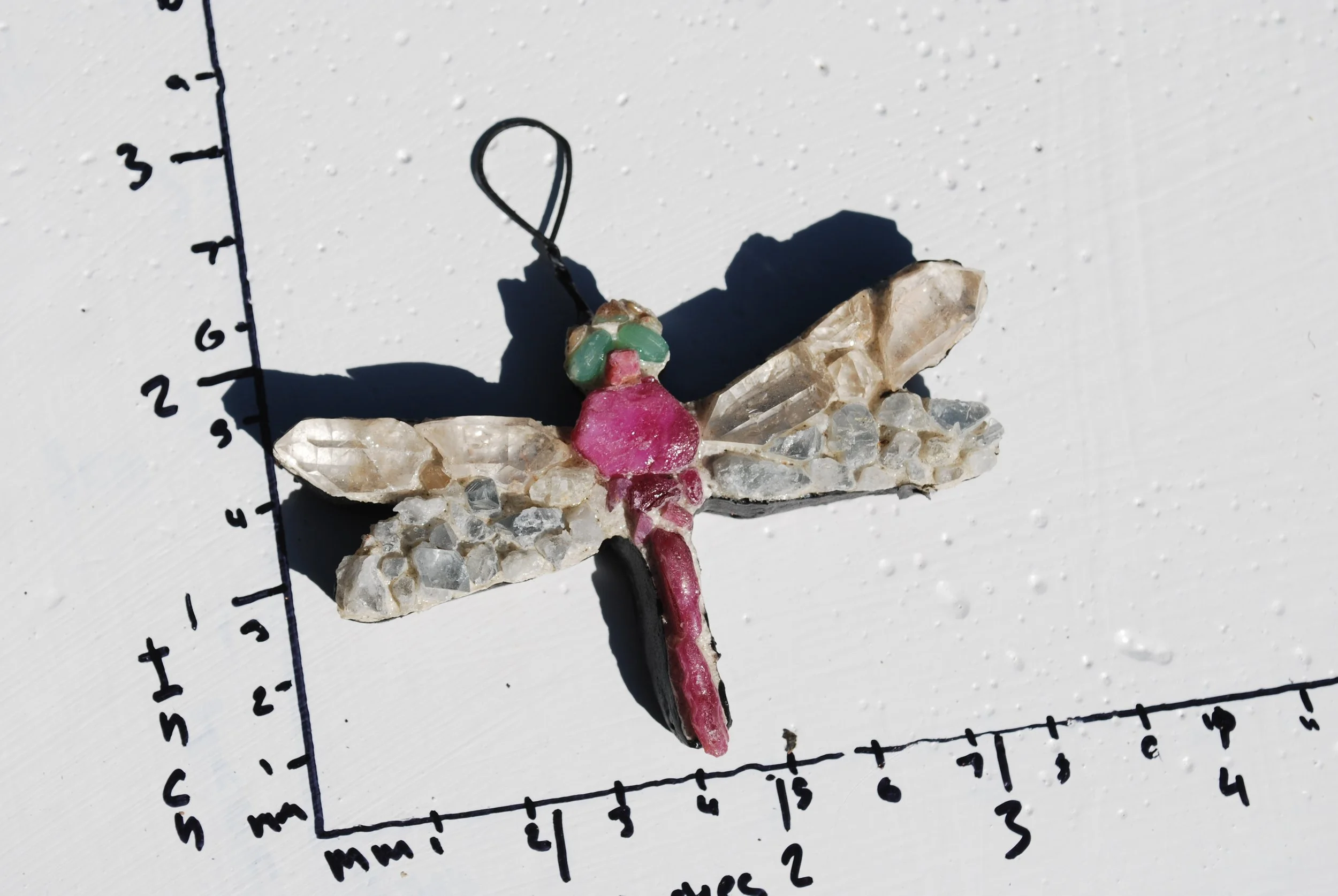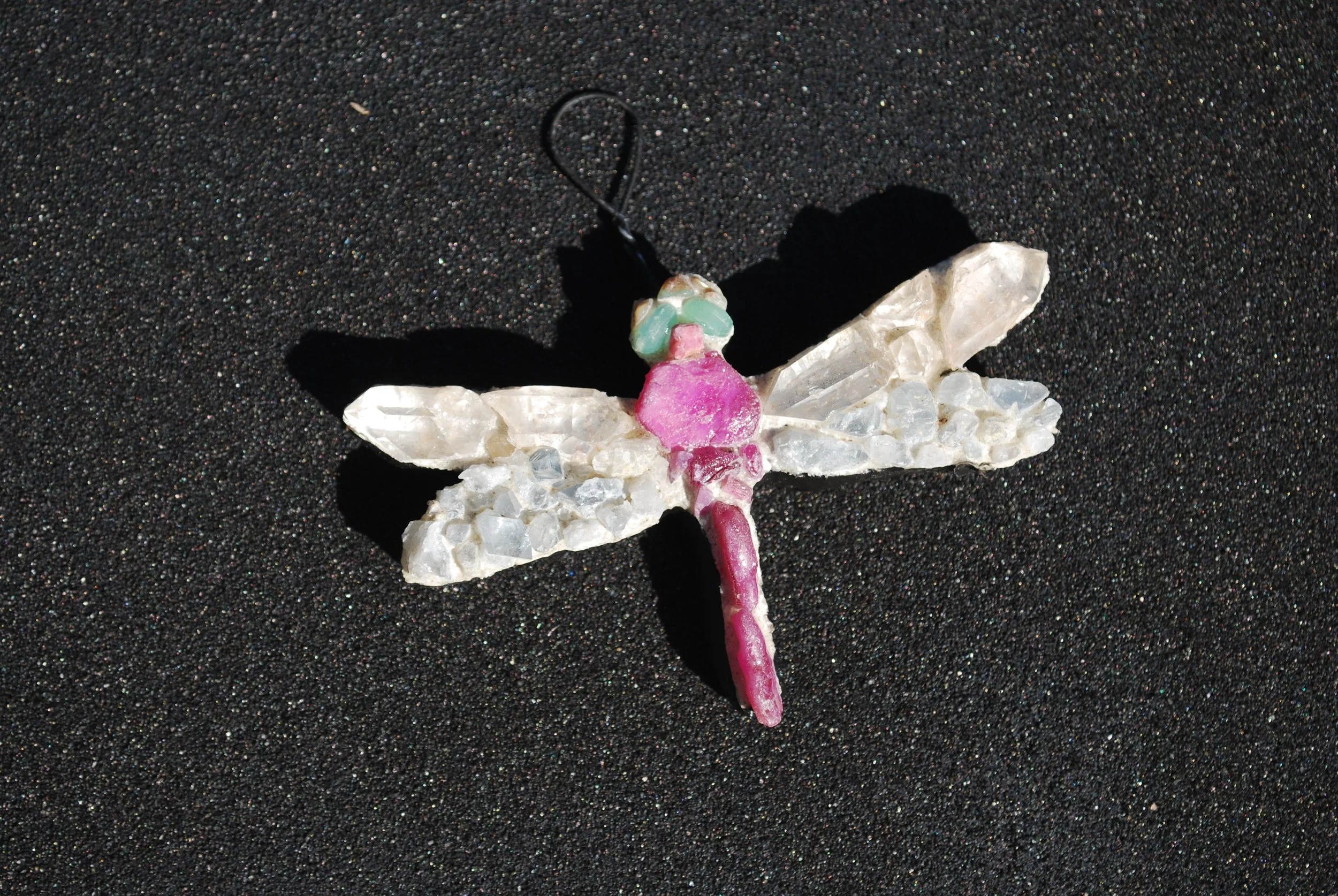 Crystal and stone pebble wing with jade bead eyes and ruby body and tail. $69.00