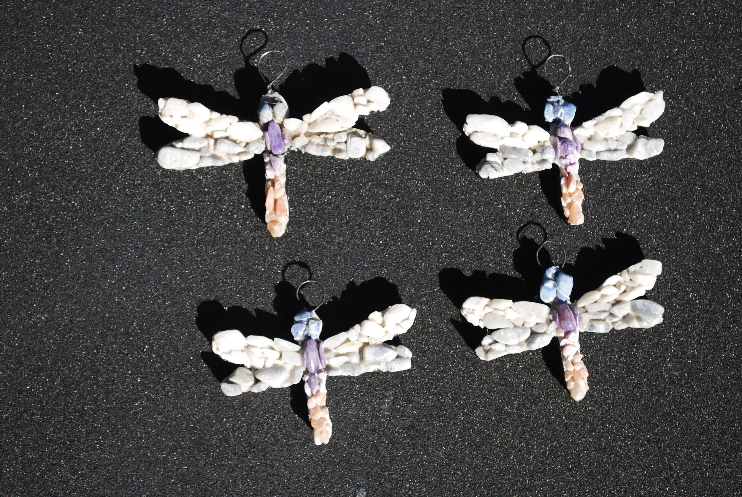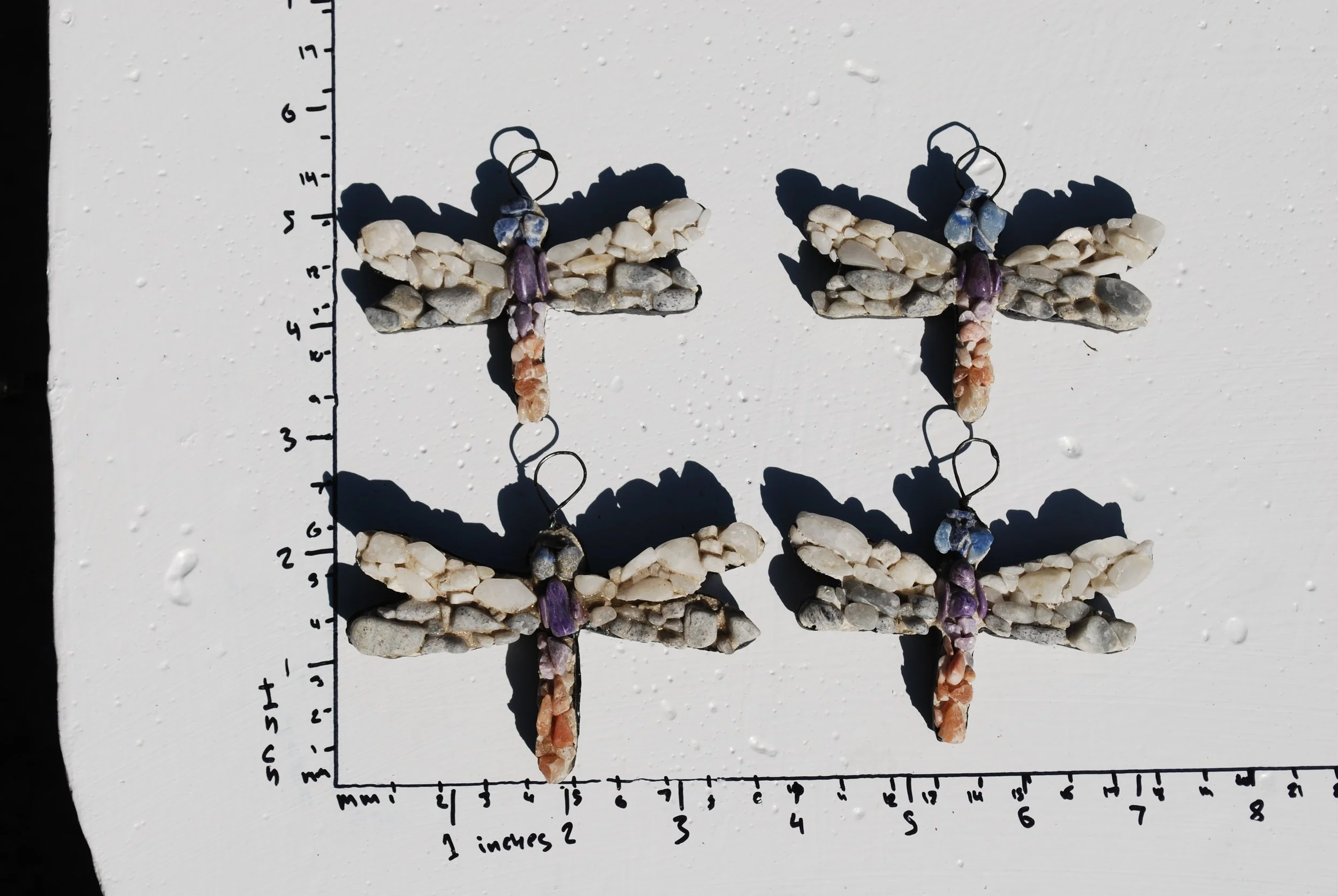 Purple and orange aventurine tail with quartz pebble wings. All four $110.00